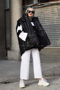 Black Hood Neck Zero Arm Without Accessories Cotton Unprinted Vest