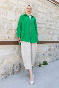Green-1 Shirt Collar Long Arm Cotton Unprinted Shirt