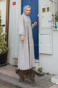 Light Grey Crew Neck Viscose Fabric Unprinted Dresess