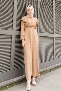 Brown Medium Crew Neck Cotton Fabric Unprinted Dresess