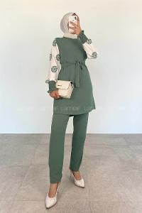 Plum Green Crew Neck Long Arm Without Accessories Ayrobin Regular Trousers Comfortable Suit