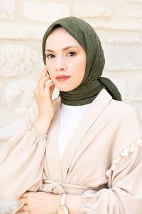 Khaki Cotton Fabric Striped Flowering Straight Printed Scarf