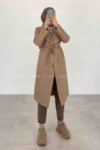 Bitter Brown Long Arm Viscose Fabric Elastan Polyester Trench Coat