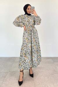 Gray Crew Neck Poplin Fabric Printed Dresess