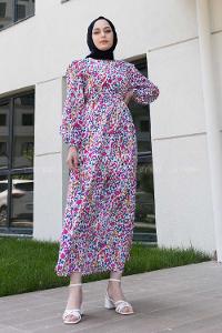 Saxe Pink Crew Neck Poplin Fabric Printed Dresess