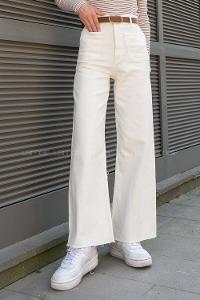 Cream Cotton Denim Elastan High Waist Denim Pants
