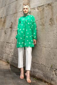 Emerald Green Shirt Collar Long Arm Cotton Shirt