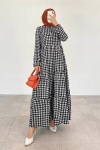 Black Mandarin Collar Cotton Viscose Fabric Printed Dresess