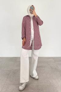 Claret Red Shirt Collar Long Arm Cotton Printed Shirt