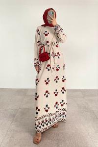 Claret Red Crew Neck Cotton Printed Dresess