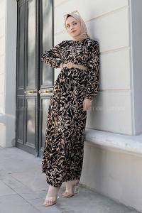 Camel Normal Neck Mira Fabric Printed Dresess