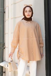 Beige Shirt Collar Long Arm Poplin Fabric Shirt