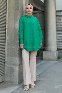 Emerald Green Shirt Collar Long Arm Cotton Poplin Fabric Shirt