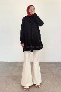 Black Shirt Collar Long Arm Cotton Unprinted Shirt