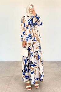 Blue Crew Neck Viscose Fabric Printed Dresess