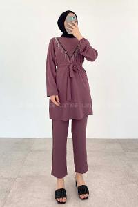 Lilac Crew Neck Long Arm Without Accessories Combed Fabric Regular Trousers Comfortable Suit