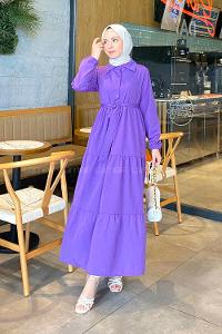 Purble Medium Crew Neck Cotton Fabric Unprinted Dresess