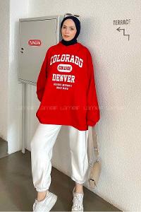 Red Hood Neck Long Arm Printed Sweatshirt