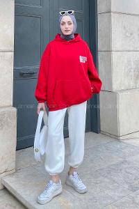 Red Hood Neck Long Arm Printed Sweatshirt