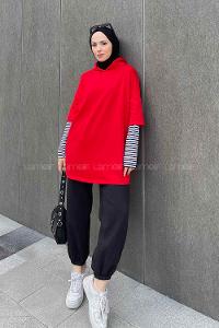 Red Hood Neck Long Arm Unprinted Sweatshirt