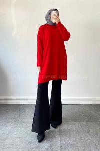 Red Mock Turtle Neck Knitwear Tunic
