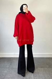 Red Turtle Neck Cotton Lycra Unprinted Tunic