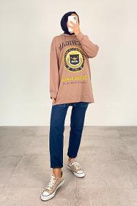 Brown With Milk Hood Neck Long Arm Unprinted Sweatshirt