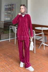 Claret Red Crew Neck Long Arm Viscose Fabric Elastan Regular Trousers Comfortable Suit