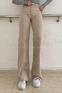 Cream Cotton Denim Elastan High Waist Denim Pants
