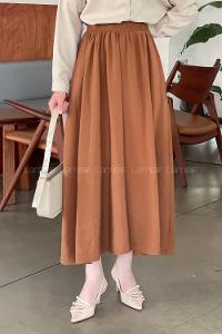 Brown With Milk Cotton Elastan Unprinted Flare Skirt