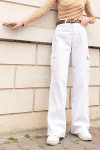 White Denim High Waist Cargo Pants