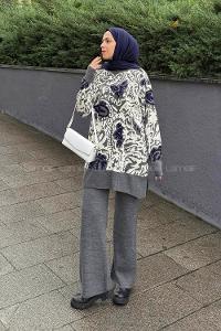 Lamelif Cep Detaylı Triko Takım Acı Kahve