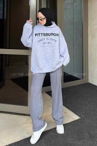 Lamelif Pıttsburgh Baskılı Sweatshirt Gri