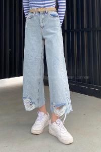Lamelif Palazzo Yırtık Jean Nostalji Mavi
