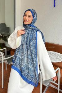 Lamelif Elegan Desen Soft Şal İndigo Taş