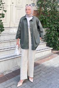 Lamelif Tek Cep Detaylı Gabardin Gömlek Haki
