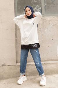 Modalamelif Bisiklet Yaka Can I Have Baskılı Sweatshirt Beyaz
