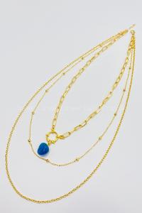 Lamelif 3Lü Kombin Mavi Doğal Taş Detaylı Set Kolye