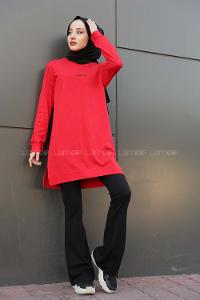 Lamelif İki iplikli Arma Detaylı Sweat Tunik Bordo