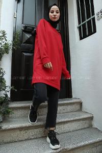 Modalamelif A Better Baskılı Yırtmaçlı Sweatshirt Kırmızı