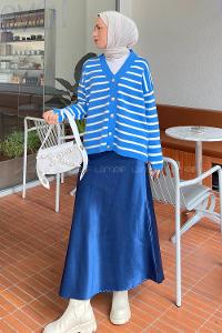 Lamelif Aliisha Çizgili Triko Kazak Açık Mavi