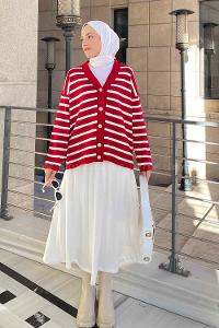 Lamelif Aliisha Çizgili Triko Kazak Kırmızı
