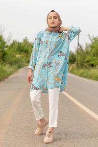 Modalamelif Animal Desen Gömlek Gömlek Bebe Mavisi