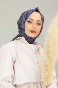 Lamelif Sarmaşık Desen Bambu Şal Lacivert