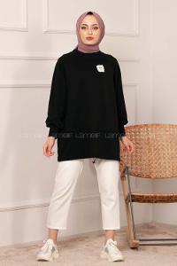 Lamelif İki iplikli Arma Detaylı Sweat Tunik Siyah