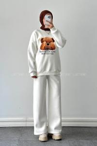 Lamelif Ayıcık Baskılı İkili Takım Beyaz