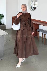 Lamelif Yarasa Kol Etekli Tesettür Takım Kahverengi