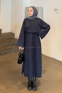Lamelif Bel Tünel Detaylı Elbise Lacivert