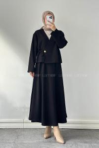 Lamelif Yan Bağlama Detaylı Etekli Takım Siyah