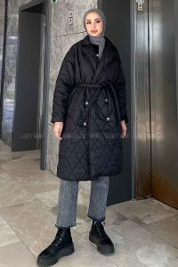 Lamelif Bağcıklı Kapitone Mont Siyah